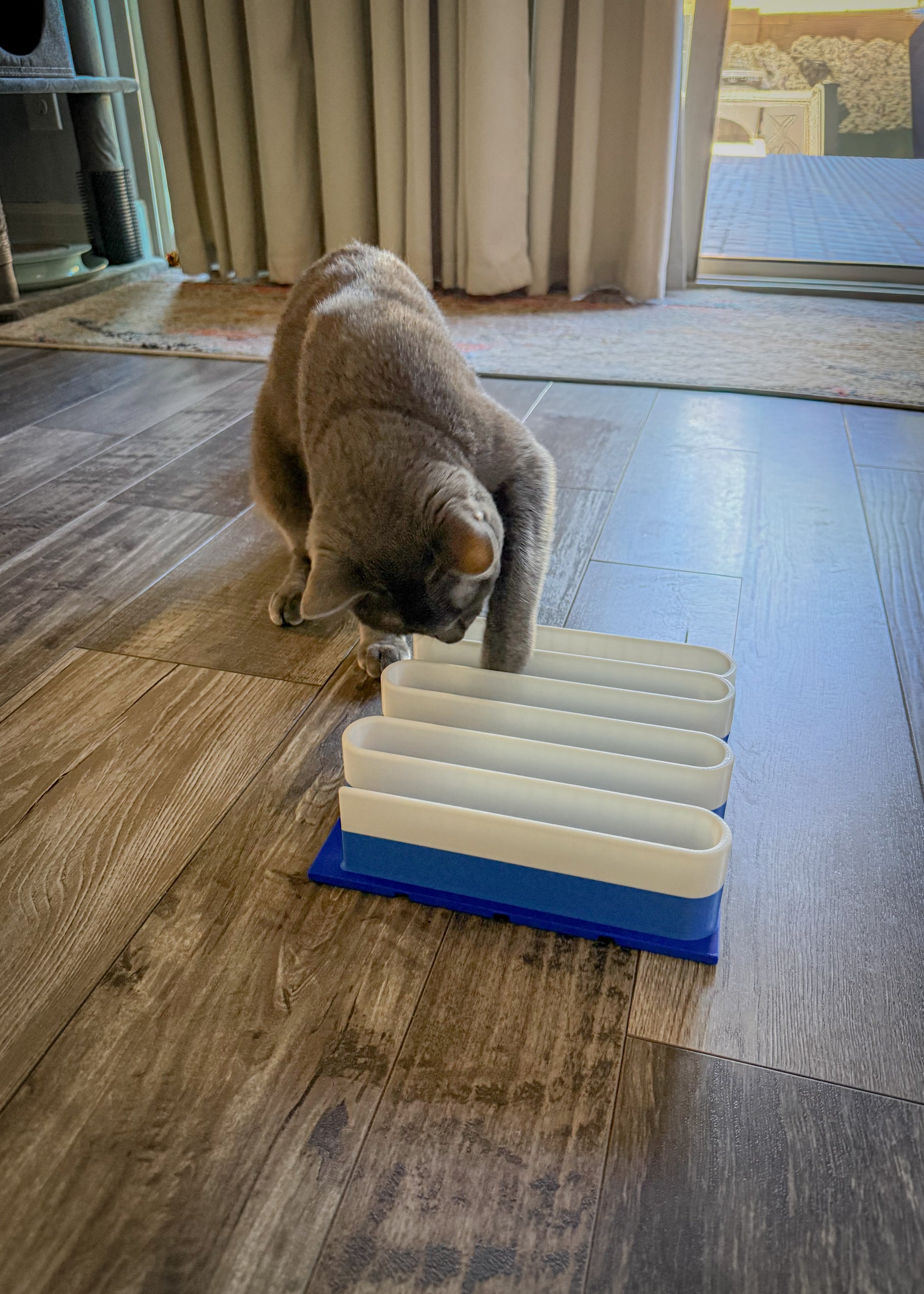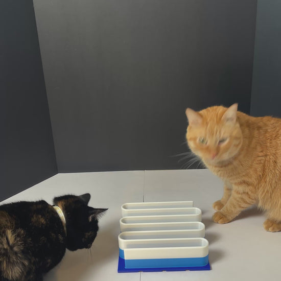 Crafted in Snap Cat’s signature blue finish, the Wiggly Treat Maze is tailored to feline vision and blends seamlessly with your Snap Cat setup. Its maze-like design encourages cats to paw, swipe, and strategize, making mealtime both interactive and rewarding. And with the Snap Cat modular system, you can expand and rearrange enrichment endlessly so your cat never gets bored.